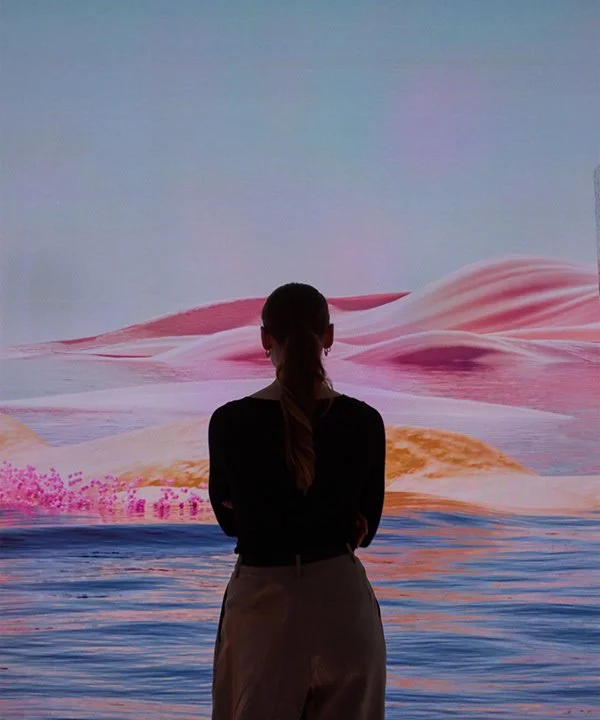 Harmonious plays with the combination of technology and human experience as complementary. In this space , the images through the window become organic shapes to reveal a new world. There is a sense of synergy – everything works in unison. This space is designed to represent the search for a future that is inclusive and capable of stopping for a moment to contemplate this thought of a newfound equilibrium, where humans and technology collaborate.